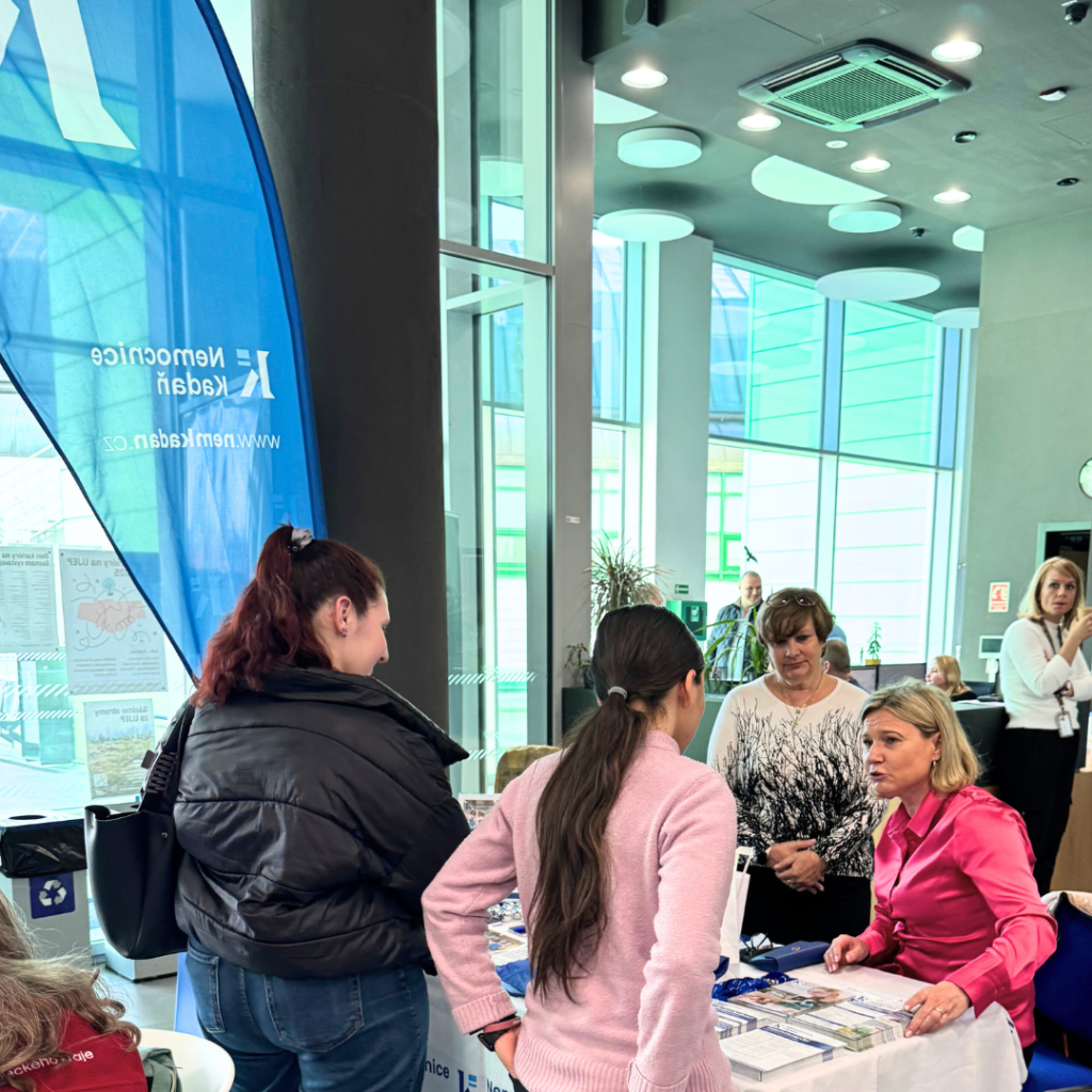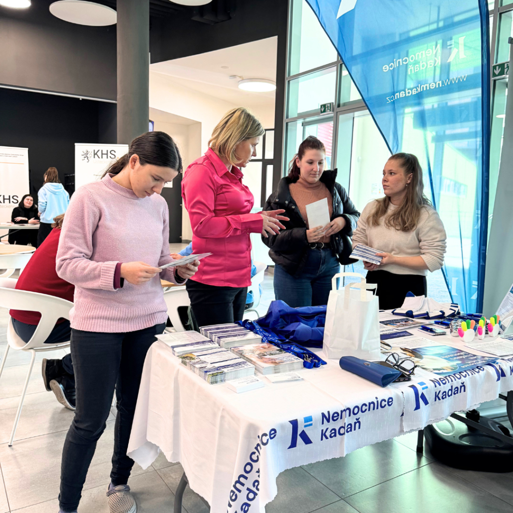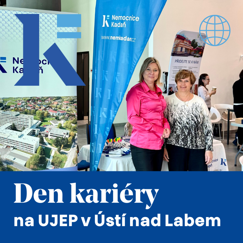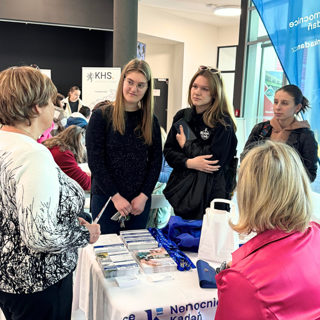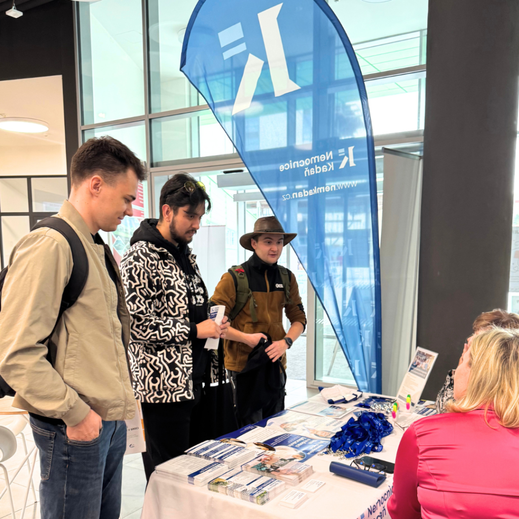 Nemocnice Kadaň nemohla mít svůj stánek nikde jinde než v atriu Fakulty zdravotnických studií, kde po boku dalších nemocnic a zdravotnických subjektů lákala studenty, budoucí všeobecné sestry, ergoterapeuty, fyzioterapeuty nebo záchranáře, na spoustu benefitů, kterých se jim v případě, že by u nás chtěli po škole pracovat, bude nebo už i může, jako v případě stipendií, dostávat.