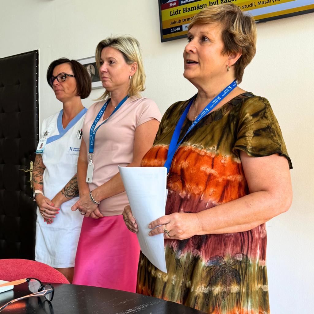Ve středu 31. 7. 2024 z rukou hlavní sestry Moniky Grof, vedoucí personálního oddělení Bc. Lenky Benešové a vrchní sestry chirurgického oddělení Mgr. et. Mgr. Aleny Radošová převzalo certifikát dalších šest nově akreditovaných sanitářů a sanitářek a pět z nich už je zaměstnáno v naší nemocnici na oddělení chirurgie, ortopedie, centrální sterilizace a na dětském oddělení, kde se stali nedílnou součástí zdravotnického personálu.