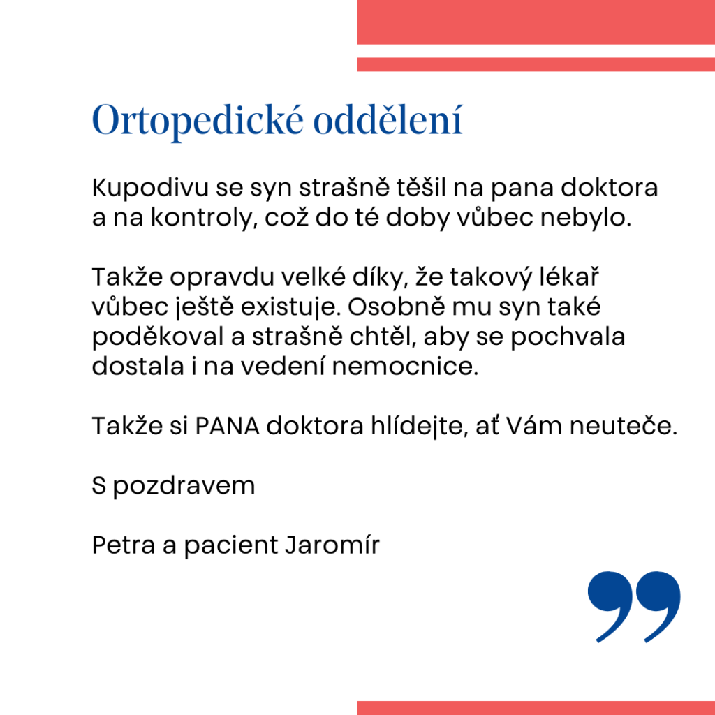 JEDNA KRÁSNÁ POCHVALA NA NAŠÍ ORTOPEDII PŘISTÁLA V INBOXU.