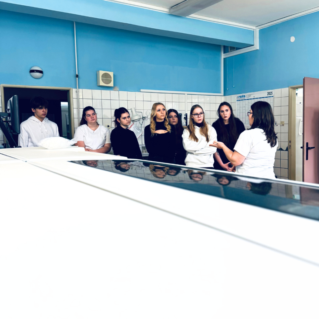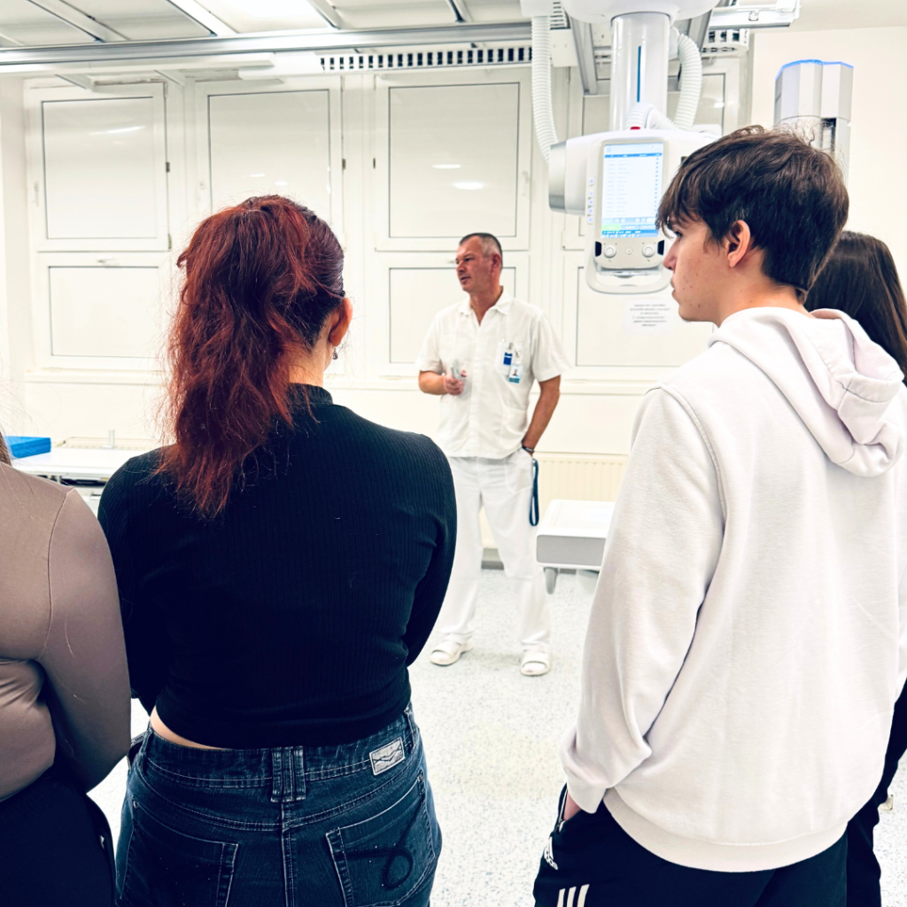 Studentky a student Střední zdravotnické školy v Chomutově se podívali nejprve na samotné oddělení, které prošli od sesterny po sklad. Seznámili se s celým týmem, který je zasvětil do každodenního chodu oddělení. Poté už se vydali na centrální příjem, kde každý interní pacient začíná svou cestu nemocnicí, interní ambulanci, kardiologii a diabetologii, zastavili se na oddělení následné komplexní péče, které s internou úzce spolupracuje, radiodiagnostickém oddělení, a nakonec navštívili i laboratoř, bez jejíž mravenčí práce se nemocnice jednoduše neobejde.