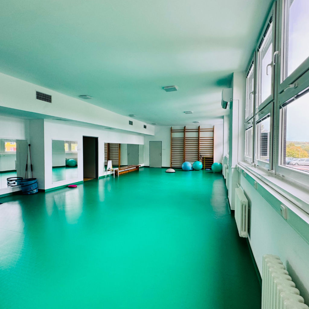 Vyměnili jsme podlahu, opravili zdi i stropy. Tělocvična je kompletně vymalována, jsou natřené dveře a vyměněna světla. Lavičky, žebřiny a rámy zrcadel bylo třeba zrenovovat a natřít. Do oken přišly nové žaluzie a brzy zakoupeným rehabilitačním přístrojům jsme připravili zbrusu nové zásuvky.